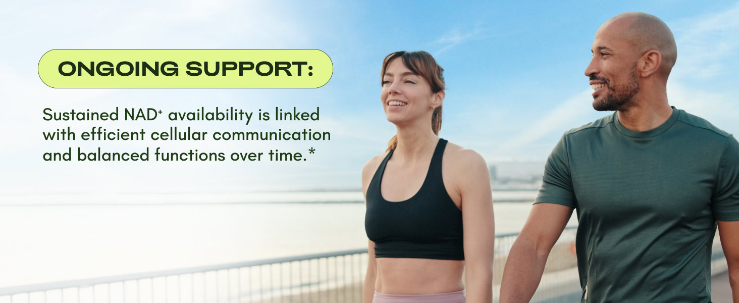 NAD+ is a vital coenzyme found in every cell of the body. It plays a key role in supporting mitochondrial function and cellular energy production. Maintaining NAD+ levels may help promote cellular resilience, support healthy aging, and contribute to cognitive and metabolic function over time.*