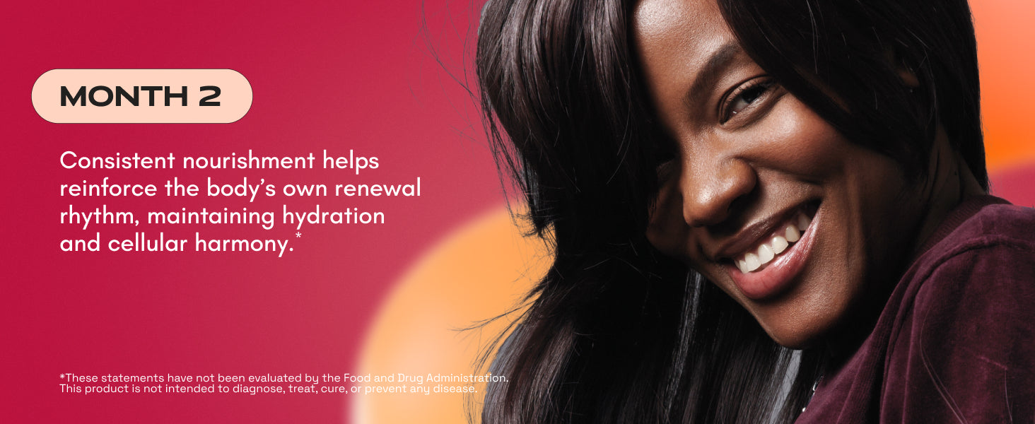 Your hair, skin, and nails reflect what’s happening inside your body. Our advanced formula is designed to nourish beauty from within, supporting collagen production, hydration, and cellular renewal for visible results over time.