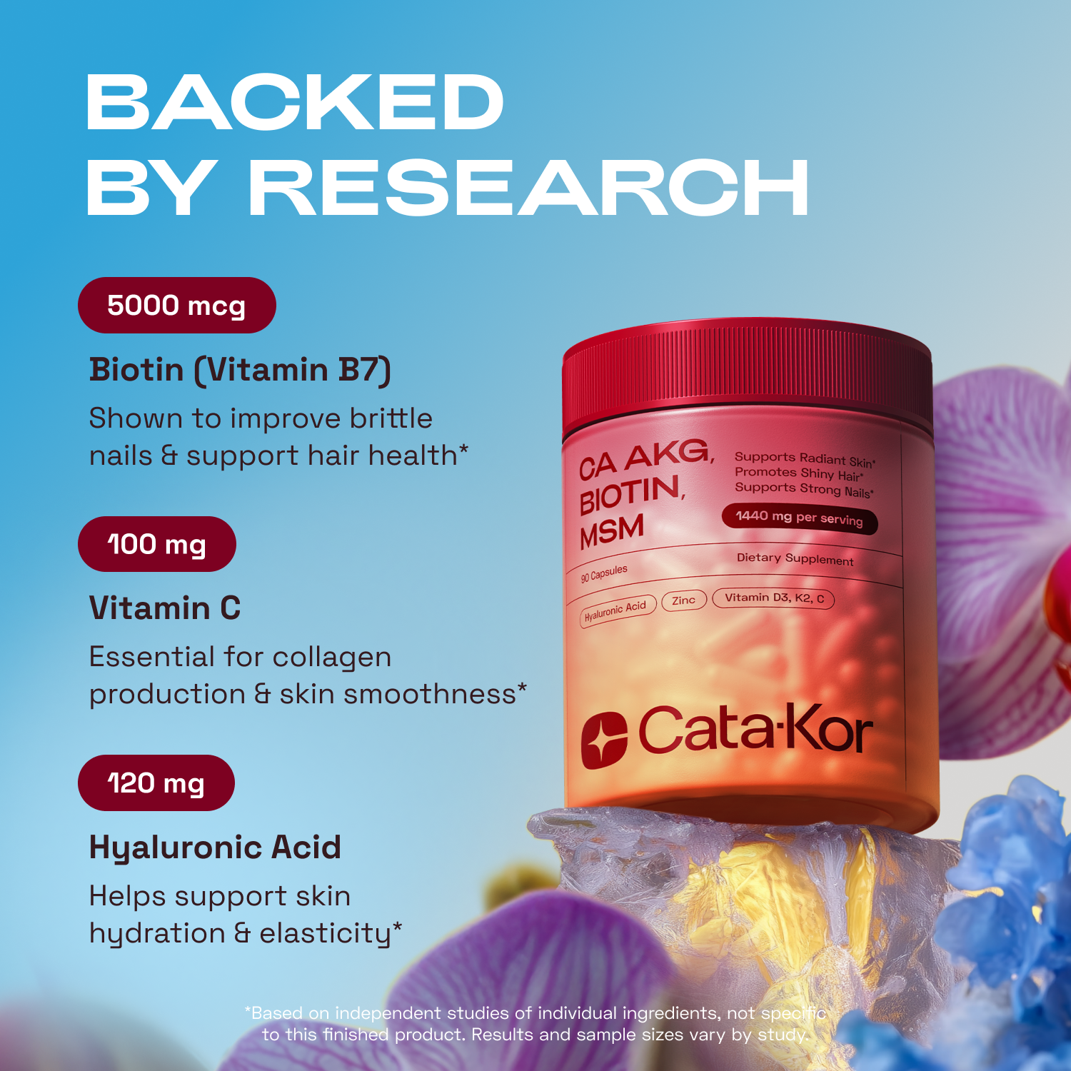 CA AKG BIOTIN MSM is made in the USA and sourced from global ingredients. It’sthird-party tested. No fillers. No caffeine. Pregnant? Nursing? On medication? If any of these are true, we recommend having a quick chat with your doctor before using any supplement.